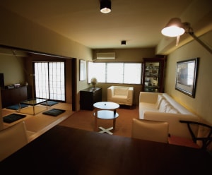 個性的な土地からプランニングされた空間は茶室も併設され、住まい方の参考になるアイディアが溢れています。